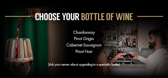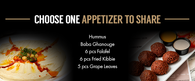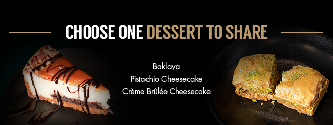 A four-course Mediterranean dinner for two featuring a shared appetizer, two entrees, a dessert to share, plus a bottle of wine—just $80.